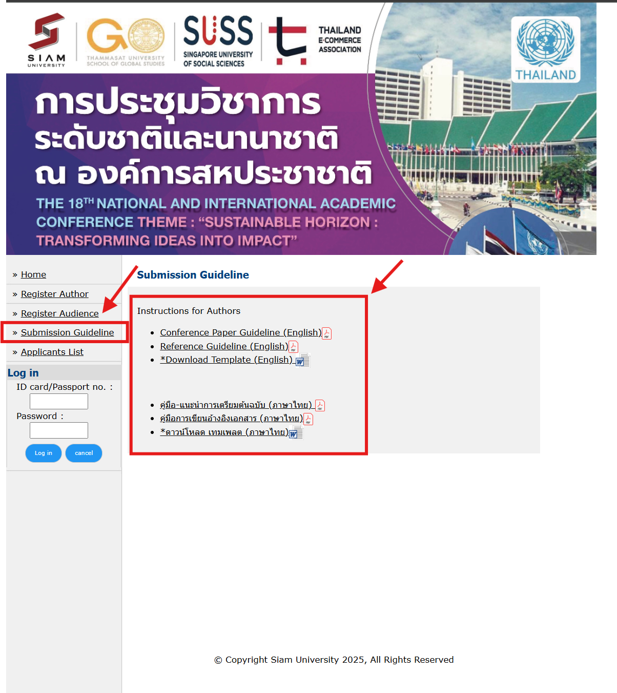 注:可在注册页面左侧菜单栏处点击Submission Guideline页面中下载会议文章写作模板。