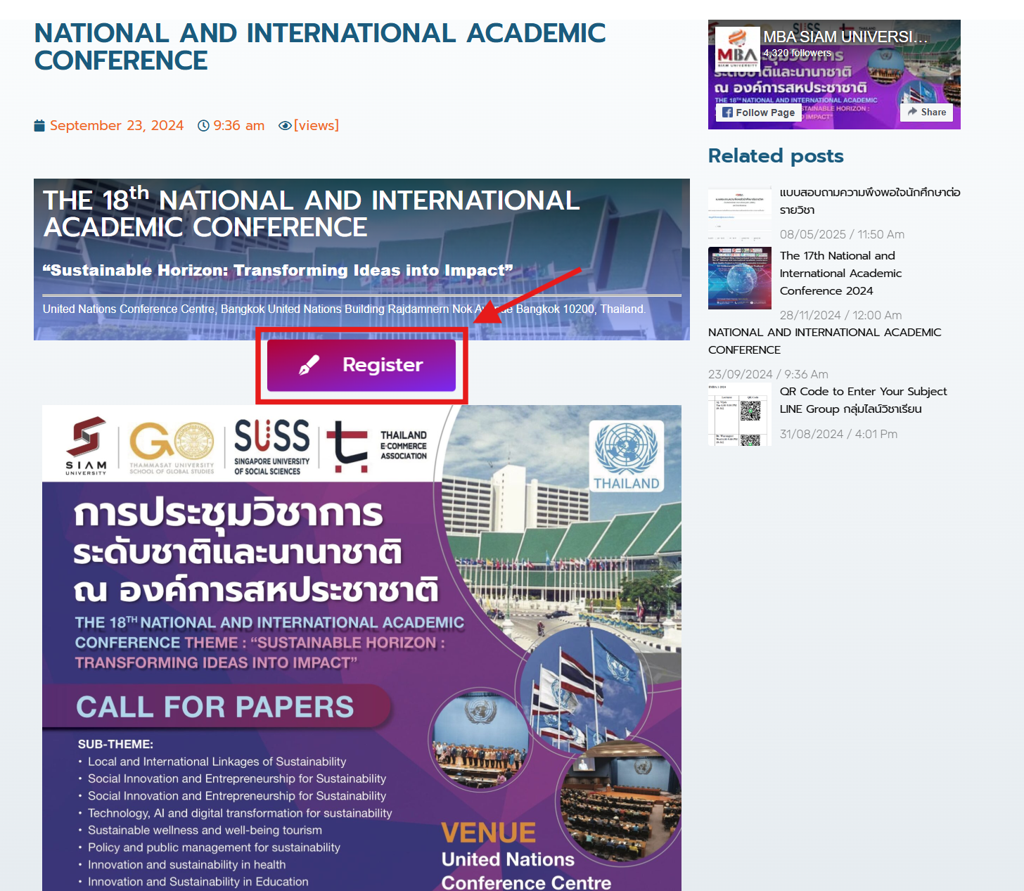 2. 扫描海报二维码或登录https://mba.siam.edu/conference/