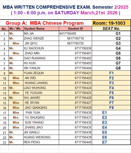 2568学年第二学期综合考试笔试名单和规则条例及时间地点 Rules & Regulations for “On-Site” Written Comprehensive Exam.